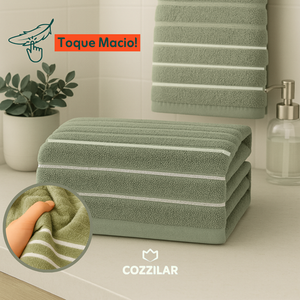 A Toalha de Banho Cozzilar foi desenvolvida para entregar conforto imediato após o banho, com fio penteado em algodão que proporciona toque macio e absorção eficiente. O tamanho grande (70 x 140 cm) garante cobertura confortável, enquanto a felpa volumosa aumenta a capacidade de secagem e a sensação de aconchego. Para completar, a barra decorativa valoriza o visual do banheiro sem abrir mão da durabilidade.